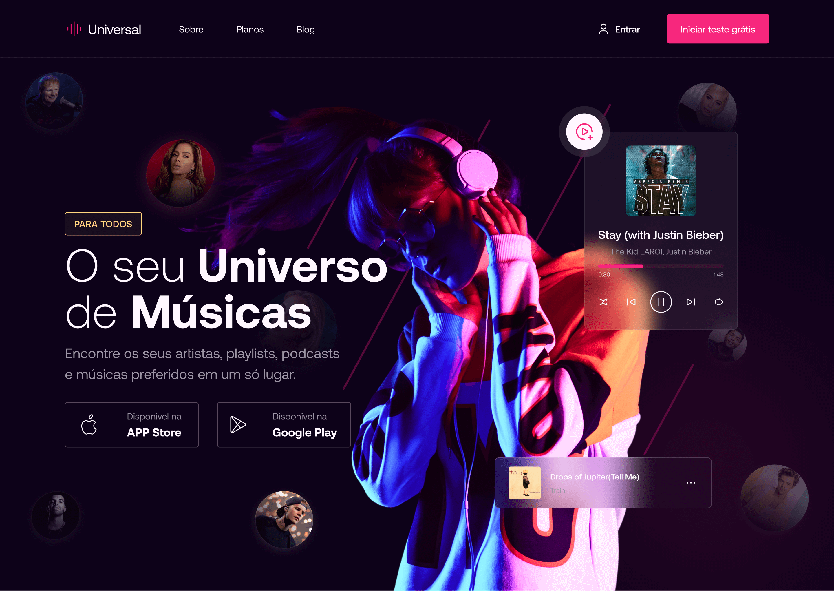 Universal - Landing page para um app de músicas